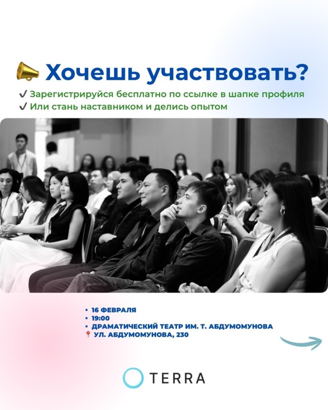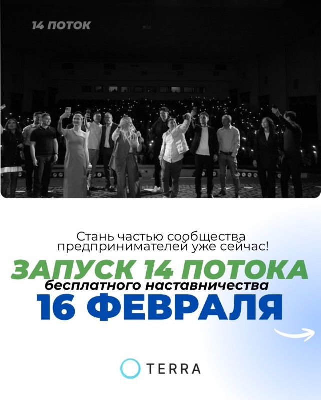 14 поток Terra Bishkek — бесплатное наставничество для предпринимателей и тех, кто хочет расти быстрее: структура, сильное окружение и наставники с реальным бизнес-опытом.