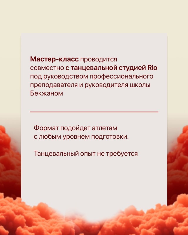 Мастер-класс подойдет атлетам с любым уровнем подготовки – танцевальный опыт не нужен