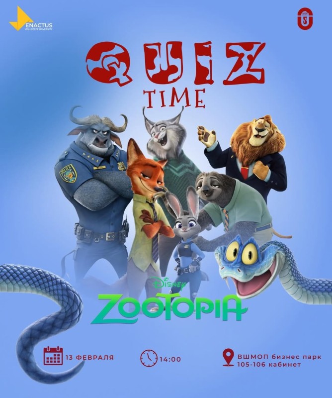 13 февраля приглашаем вас на тематический квиз в стиле Zootropolis — отличный способ провести время за день до Дня святого Валентина ✨
