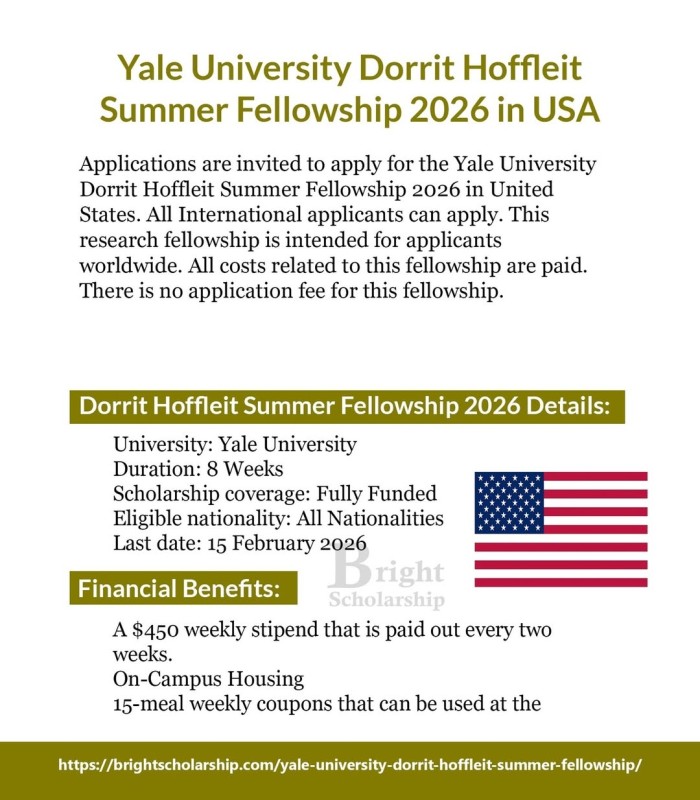 Yale University Dorrit Hoffleit Summer Fellowship 2026 in USA (Fully Funded)
