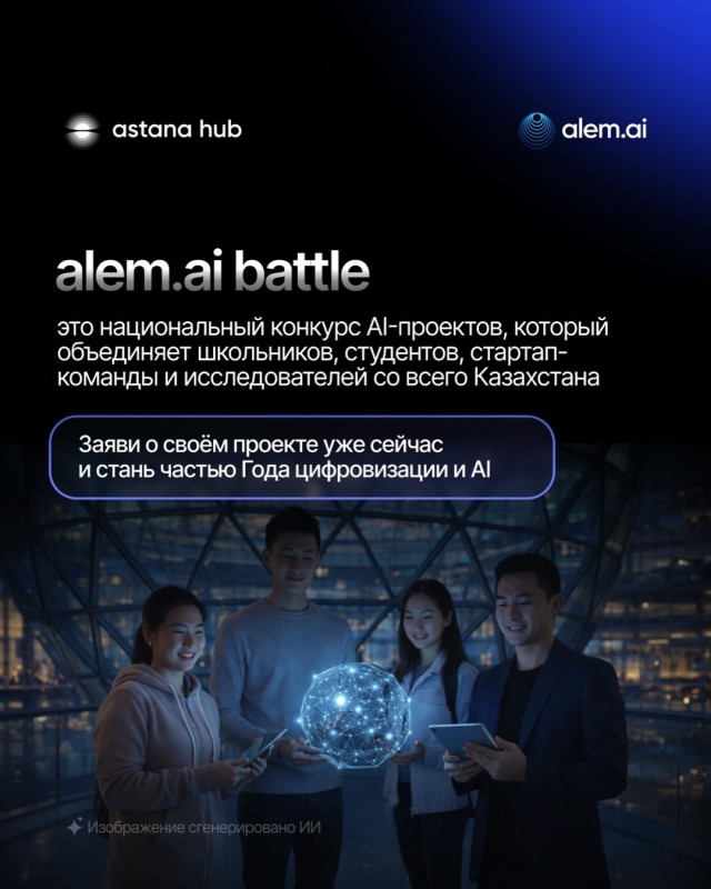 alem.ai battle — национальный конкурс AI-проектов, который объединяет талантливых школьников, студентов, стартап-команды и исследователей со всего Казахстана 🇰🇿