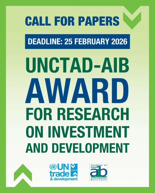 UN Trade and Development (@UNCTAD) and the Academy of International Business (AIB) invite submissions of original papers on international investment and development.