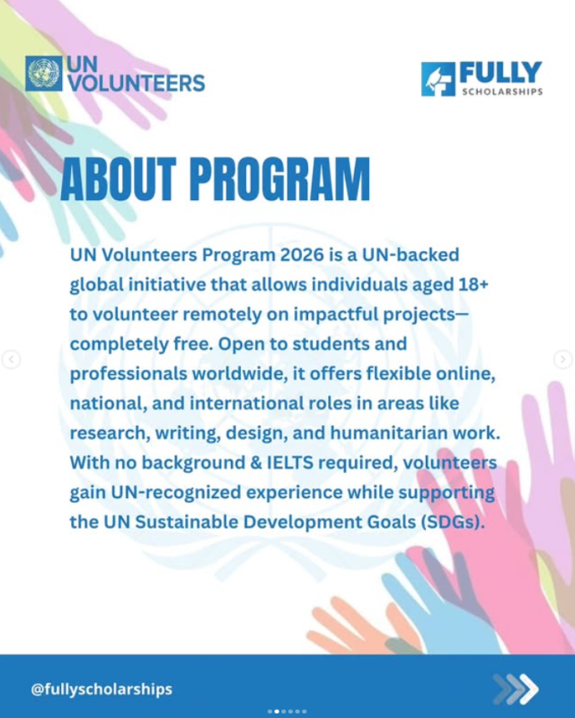 Become part of a global community of change makers! The UN Volunteer Program 2026 is now open for applications and recruits volunteers from all around the world.