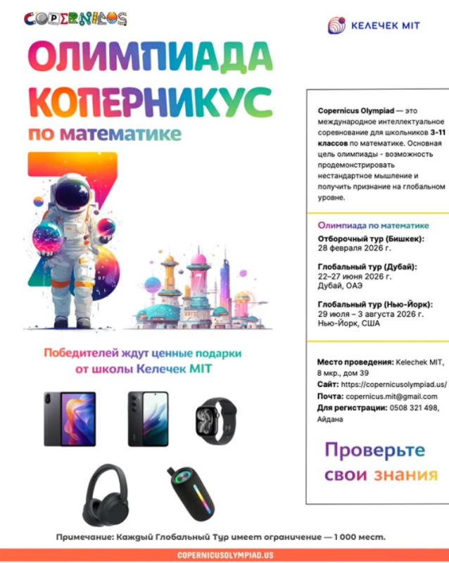 Наша школа Kelechek MIT стала официальным национальным организатором Copernicus Olympiad по математике в Кыргызстане!