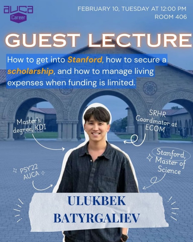 Во время лекции Улукбек поделится практическими знаниями из своего личного академического пути,
