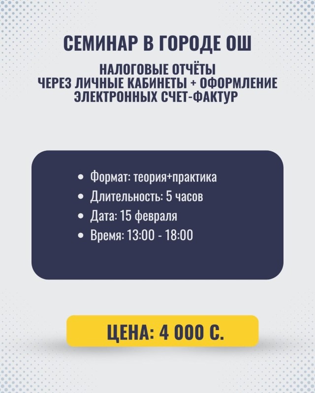 🙌 Приглашаем на 5-часовой практический семинар на тему: «Налоговые отчёты через личные кабинеты + электронные счета-фактуры (ЭСФ)».