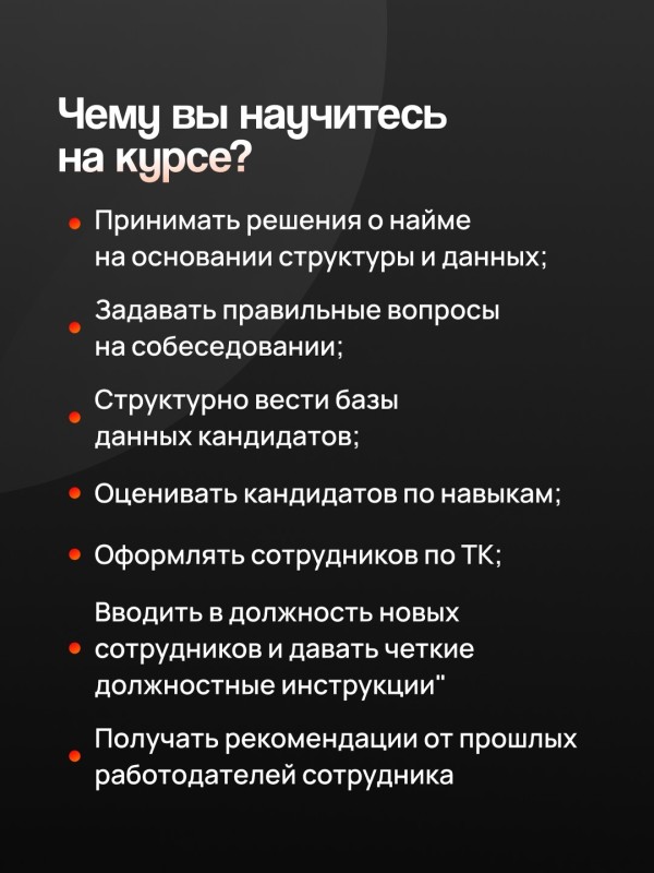 Курс дает готовые инструменты и чеклисты для снижения стоимости ошибок и превращения найма в управляемый бизнес-процесс.
