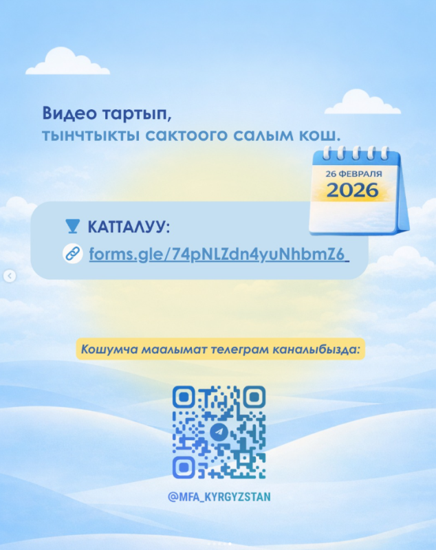 В рамках проведения Региональной конференции «Образование ради мира и безопасности», приуроченной к Международному дню просвещения по вопросам разоружения и нераспространения, которая состоится 5 марта 2026 года в г. Бишкек, объявляется конкурс видеороликов среди студентов высших учебных заведений Кыргызской Республики.