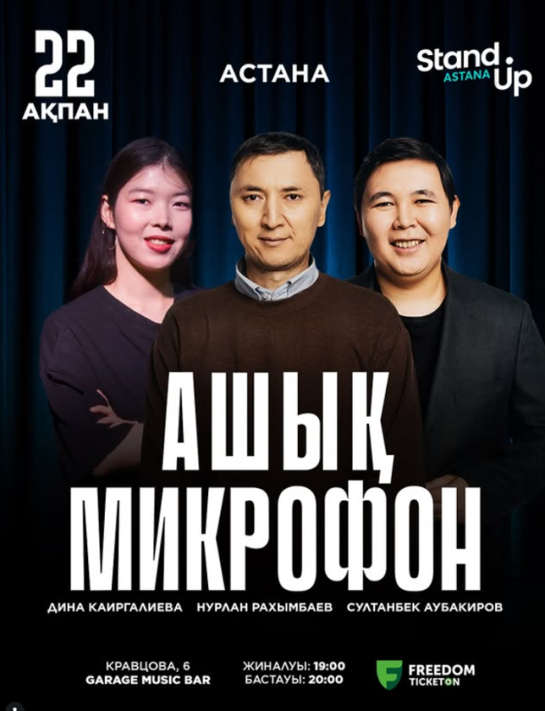 Жаңа әзілдерді естіп, жаңа комиктердің қалай сахнаға шығып жатқанын көргіңіз келе ме? Ашық микрофонға келіңіз!