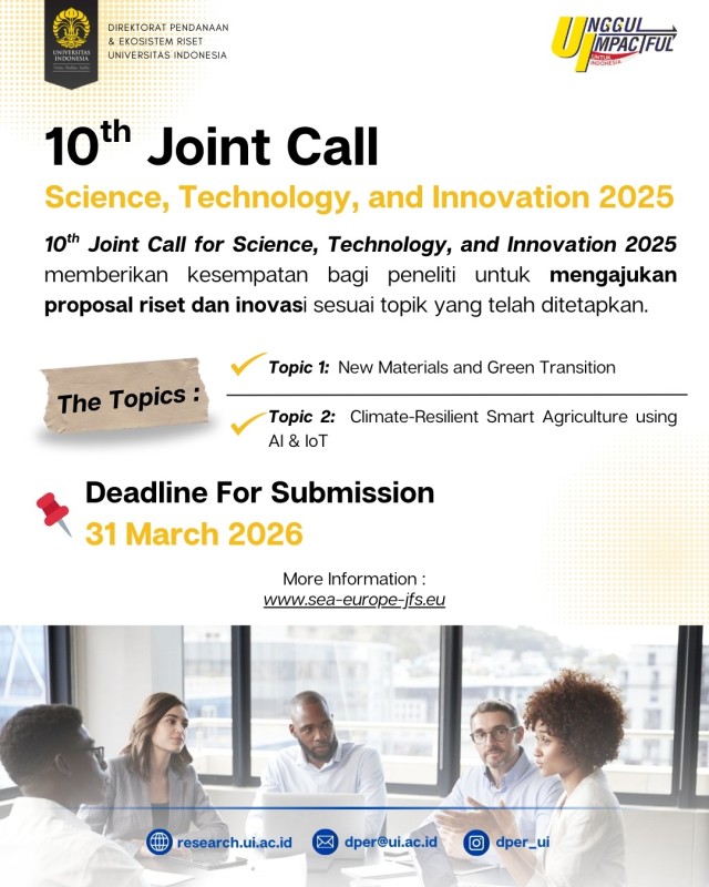 Kegiatan ini merupakan pengumuman resmi pembukaan 10th Joint Call for Science, Technology, and Innovation 2025 yang diselenggarakan dalam skema kerja sama pendanaan riset Asia Tenggara–Eropa. Program ini memberikan kesempatan bagi peneliti untuk mengajukan proposal riset dan inovasi sesuai dengan topik yang telah ditetapkan.