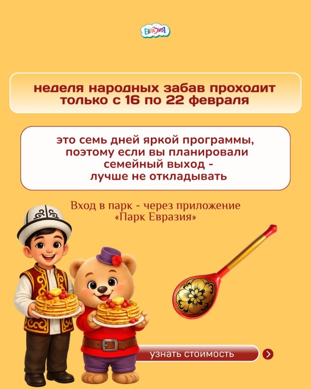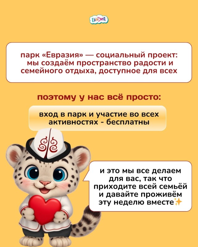 Бронируйте посещение через приложение и проведите этот праздник вместе с парком «Евразия» 💛