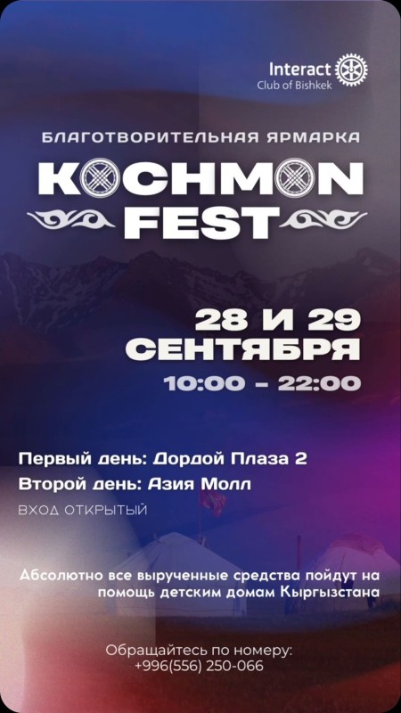 Международная Благотворительная организация «Interact Club of Bishkek» устраивает Масштабную Благотворительную ярмарку «KӨCHMӨN FEST»