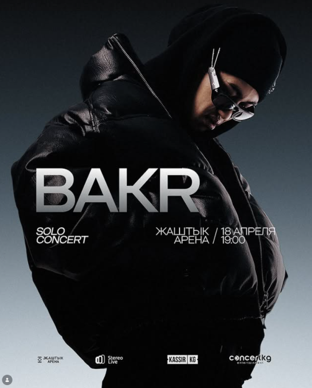 18 апреля на сцене «Жаштык Арена» состоится долгожданный сольный концерт BAKR — одного из самых ярких представителей новой музыкальной сцены.