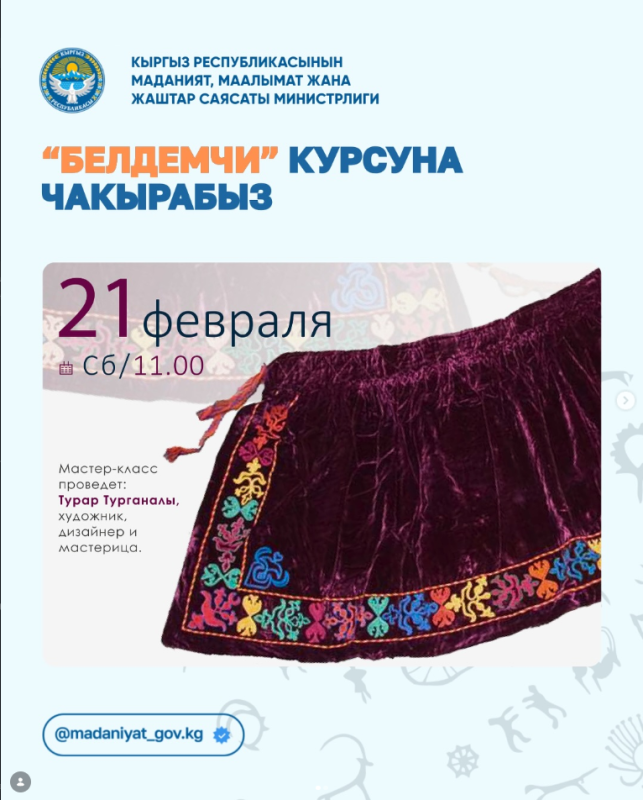 Г.Айтиев атындагы Кыргыз улуттук көркөм сүрөт искусство музейинде “Белдемчи” курсуна чакырабыз!