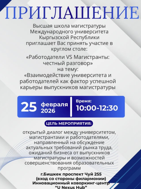 КРЭАУ Магистратура Жогорку мектеби иш берүүчүлөр менен ачык диалогго чакырат.