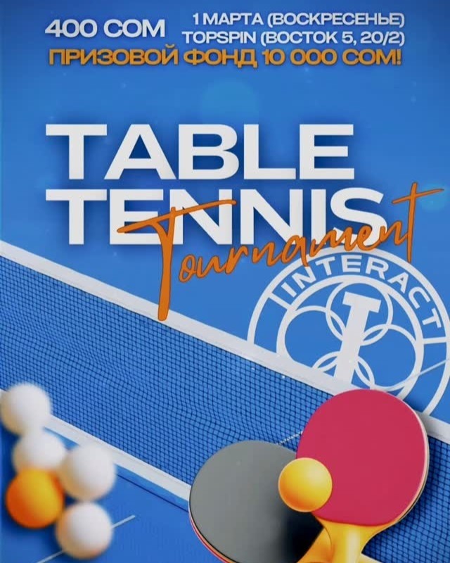 📆 1 марта Международная Благотворительная Организация Interact Club of Bishkek организовывает благотворительный турнир по настольному теннису 🤝