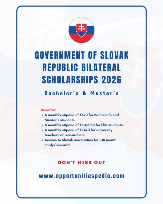 🇸🇰 Government of the Slovak Republic Bilateral Scholarships 2026