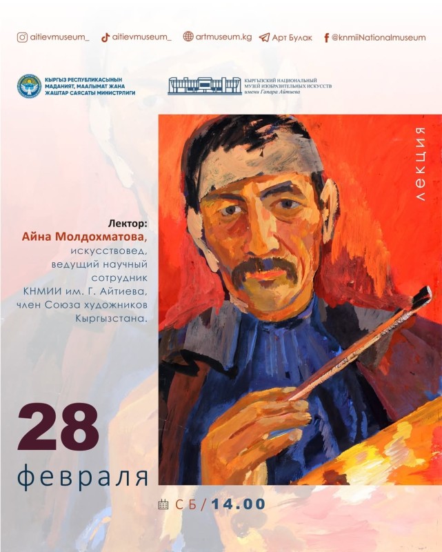 Лектор: Айна Молдохматова, искусствовед, ведущий научный сотрудник КНМИИ им. Г. Айтиева, член Союза художников Кыргызстана.