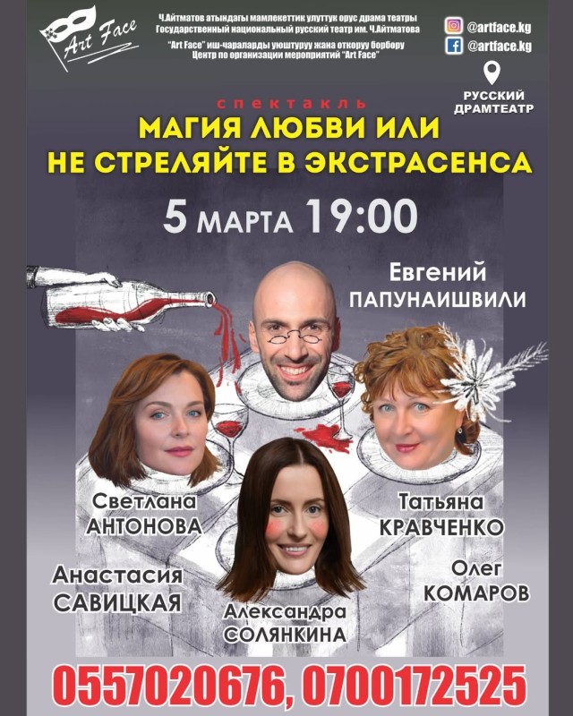 💥Комедия "Не стреляйте в экстрасенса" состоится 5 марта в 19.00 в Русском театре драмы им. Ч Айтматова.