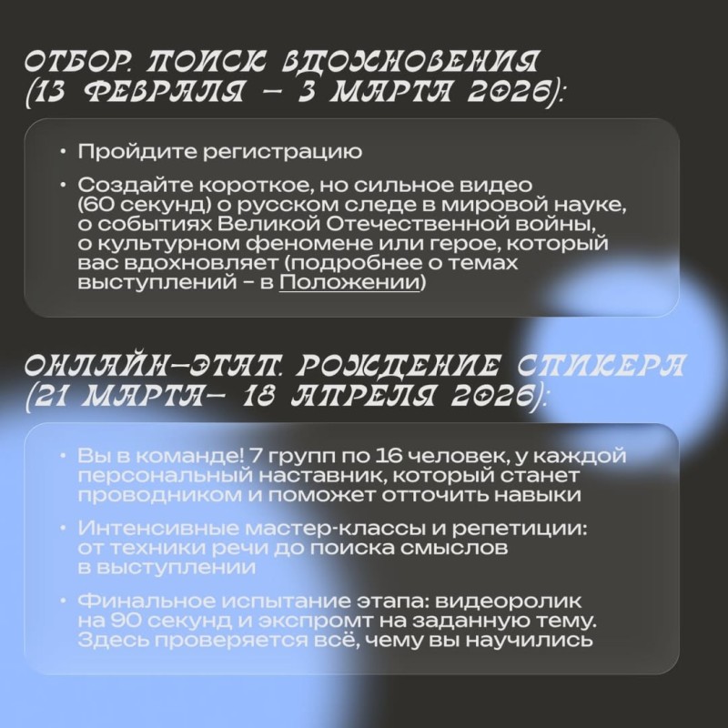 ✅ Онлайн-этап: участники, успешно прошедшие отбор, приглашаются на серию онлайн мастер-классов для оттачивания навыков