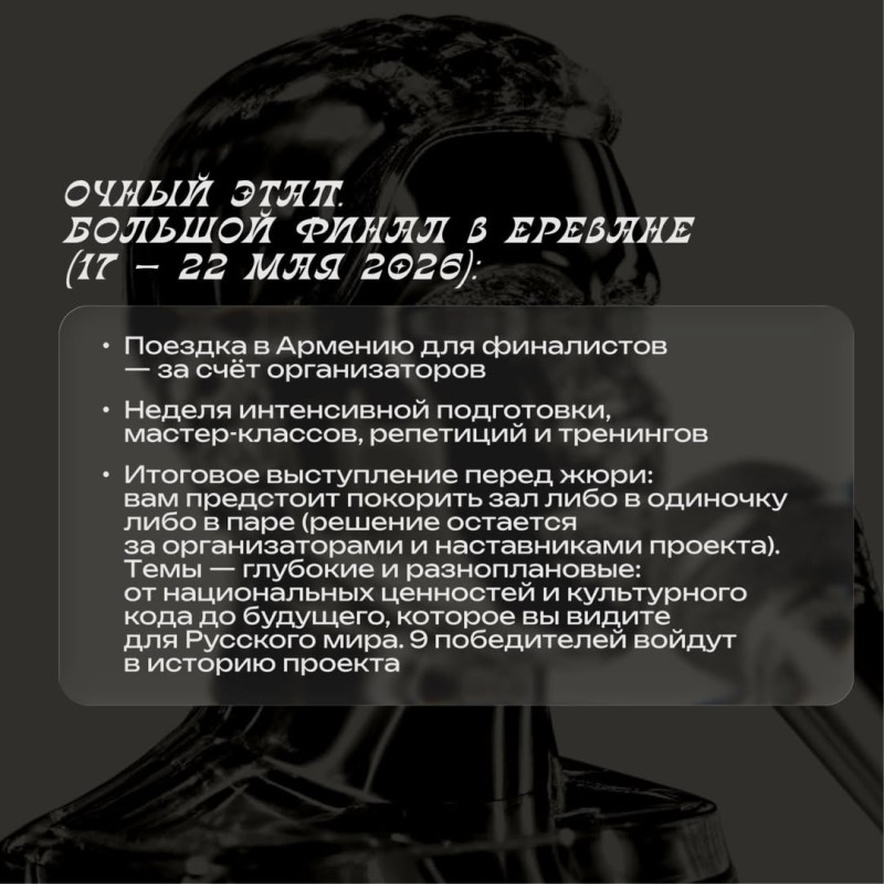 ✅ Очный этап: финалистов ожидает насыщенная культурно-образовательная Программа, которая пройдет в Ереване с 17 по 22 мая.