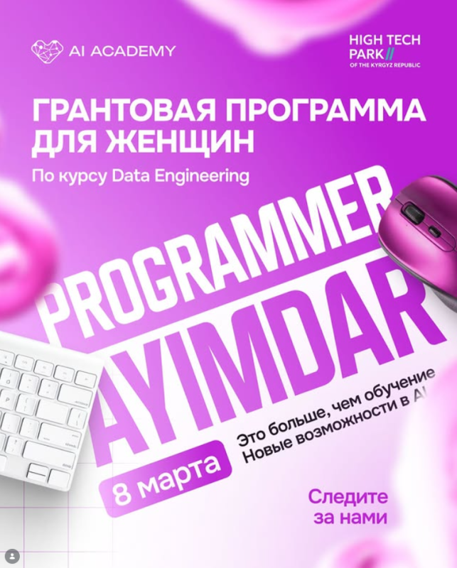 Совместная инициатива AI Academy и Парка высоких технологий Кыргызстана — это возможность бесплатно получить знания в сфере AI и IT и сделать шаг к новой профессии.