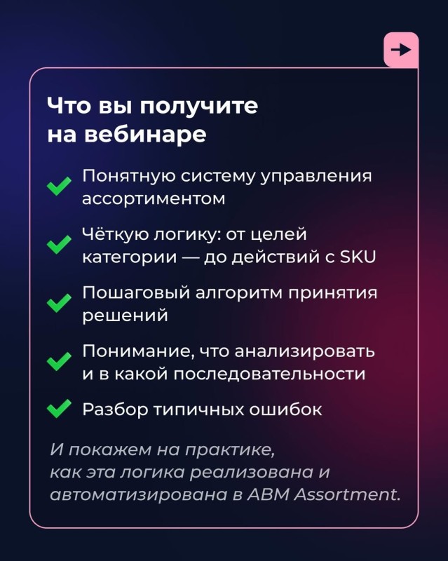 🎙 На вебинаре покажем, как выстроить чёткую логику управления ассортиментом: