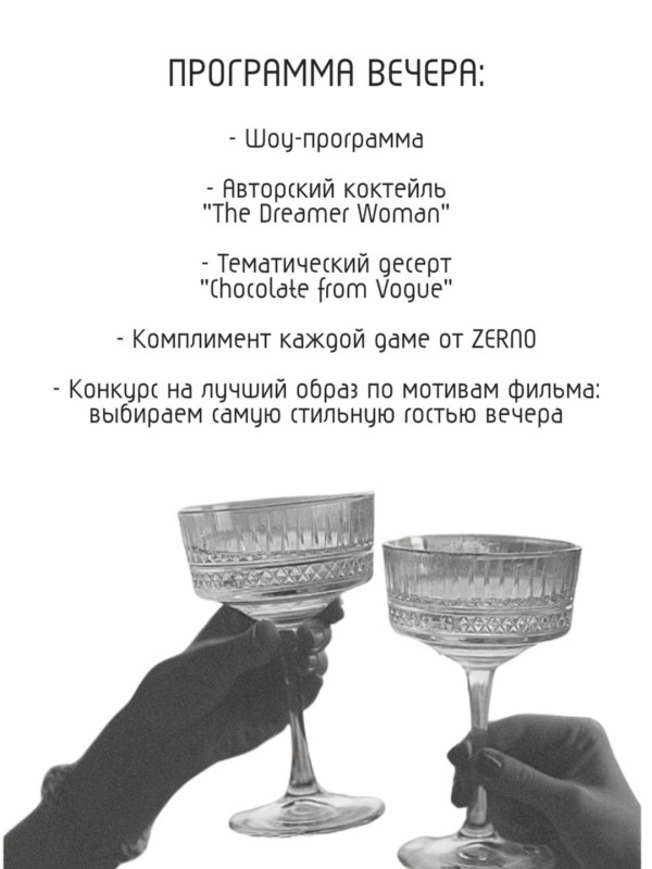 Вечер в стиле fashion, где каждая почувствует себя героиней культовой истории.