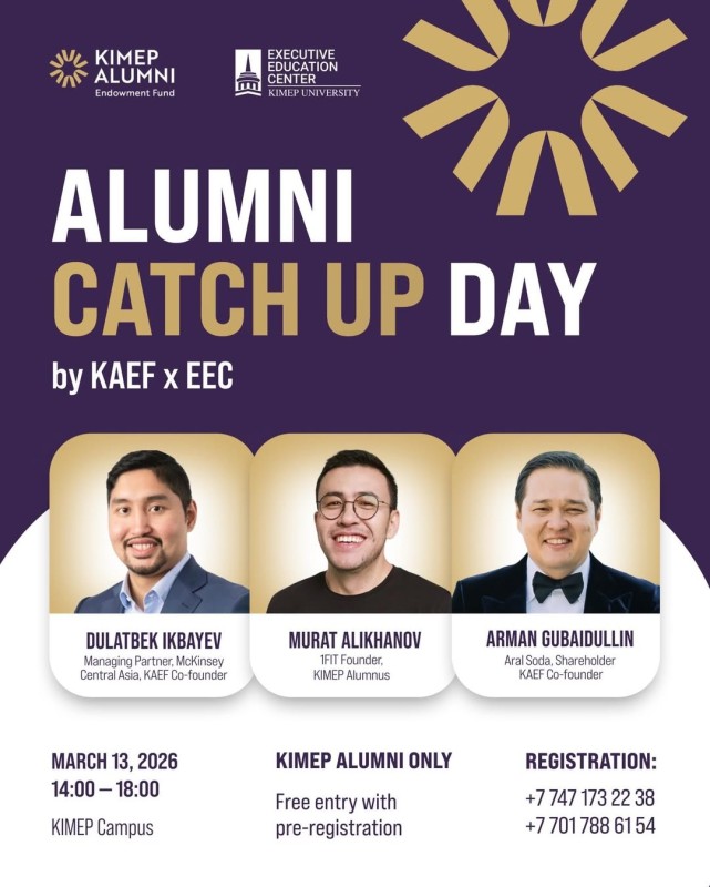 We are pleased to invite you to the closed-door Alumni Catch-up Day — an exclusive gathering that will bring together KIMEP graduates alongside founders and top executives of leading companies in Kazakhstan.