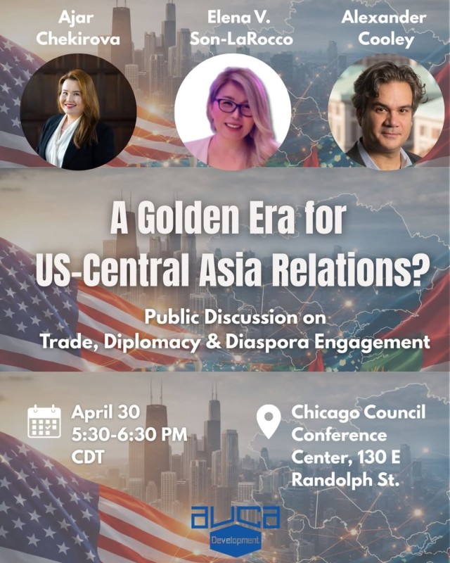 Присоединяйтесь к Аджару Чекирову, Елене В. Сон-Ларокко и Александру Кули, чтобы поучаствовать в увлекательной беседе о растущем стратегическом значении Центральной Азии, экономических возможностях и растущей роли центральноазиатских сообществ в таких городах, как Чикаго.