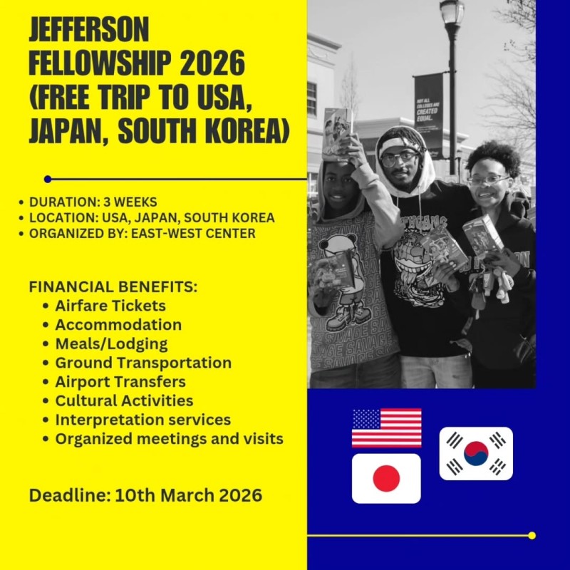 Jefferson Fellowship 2026 in USA 🇺🇸, Japan 🇯🇵, South Korea 🇰🇷 (Fully Funded)