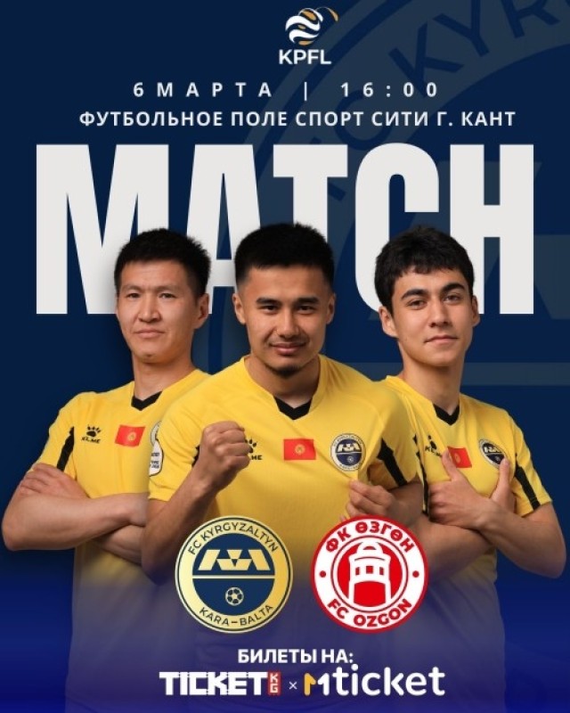 Во втором туре Высшей лиги КР встретятся ФК «Кыргызалтын» и ФК «Өзгөн». Матч пройдет на футбольном поле «Спорт Сити» в городе Кант.