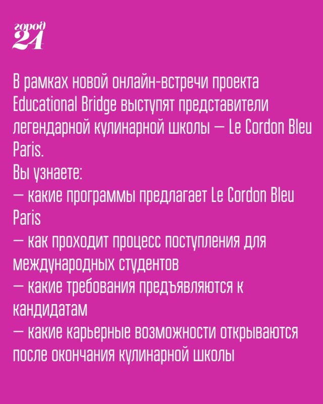 Продолжаем серию встреч с официальными представителями международных образовательных учреждений. На очереди — легендарная кулинарная школа Le Cordon Bleu Paris 🇫🇷