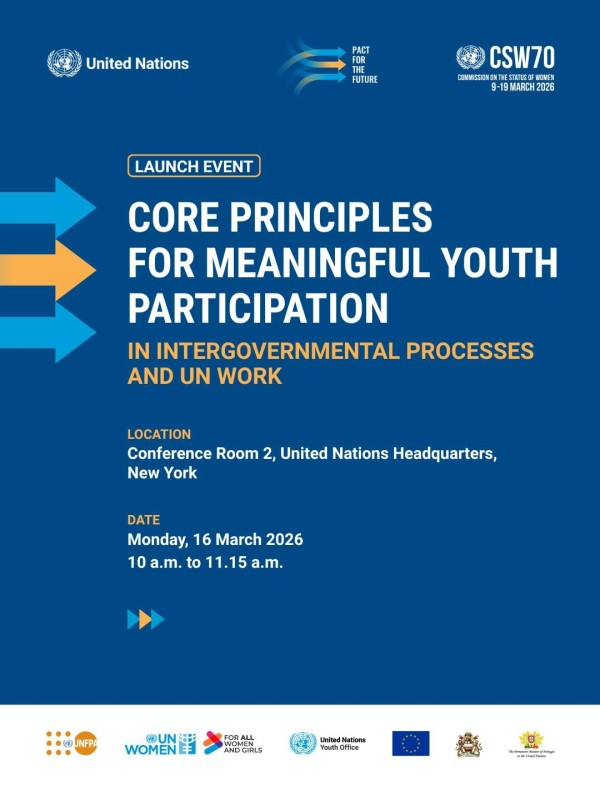 On Monday, 16 March, join us at UNHQ for the launch of the Core Principles for Meaningful Youth Participation in Intergovernmental Processes and UN Work.