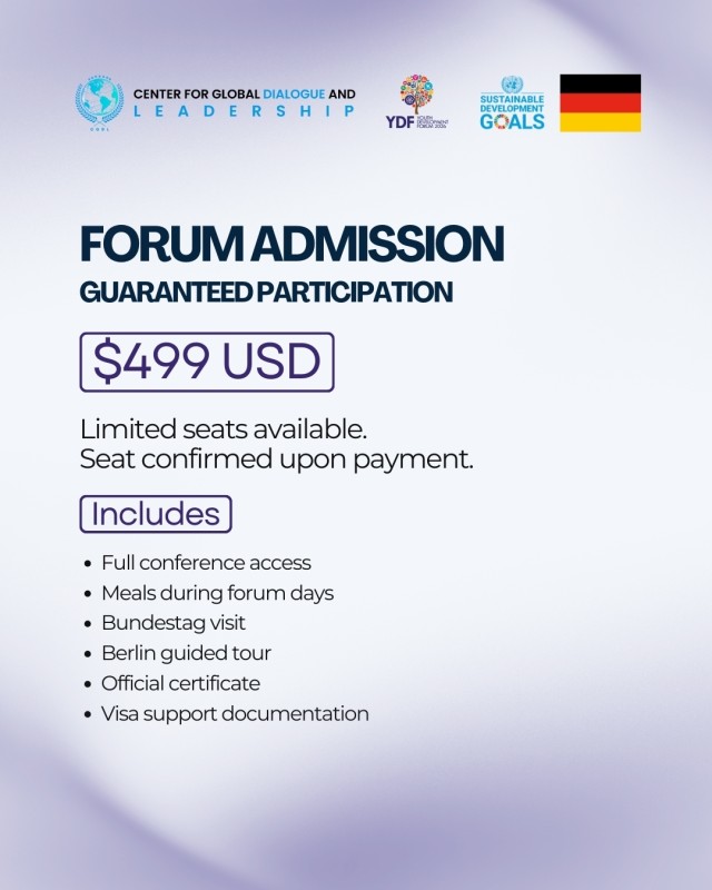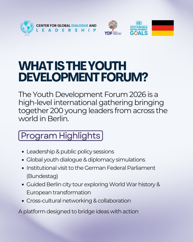 Открыт прием заявок на участие в Молодежном форуме по развитию 2026 года в Берлине, Германия (7-10 мая 2026 года).