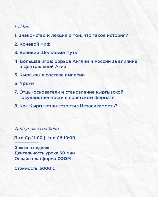 Если вам вдруг стало интересно «А что такое вообще кыргызская история?», то этот курс из 8 уроков с историком для вас.