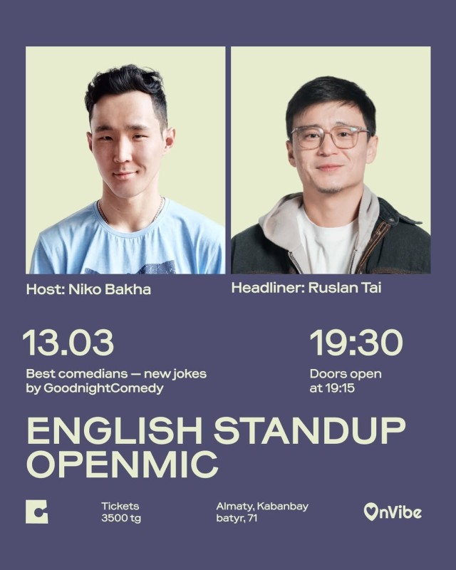 @goodnightcomedy и @central.standup.almaty представляют лучших англоговорящих комиков Центральной Азии.