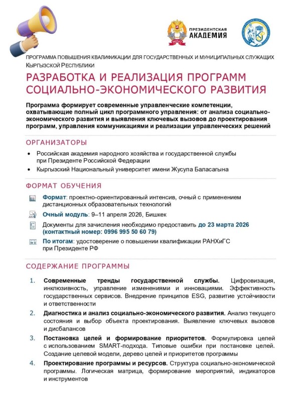 🔗Очный модуль: 9–11 апреля 2026, Бишкек;