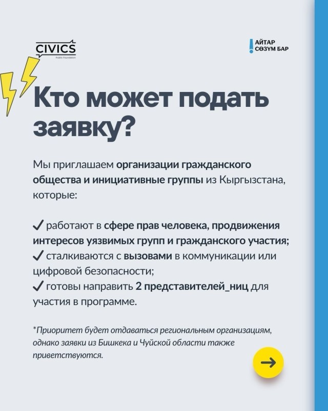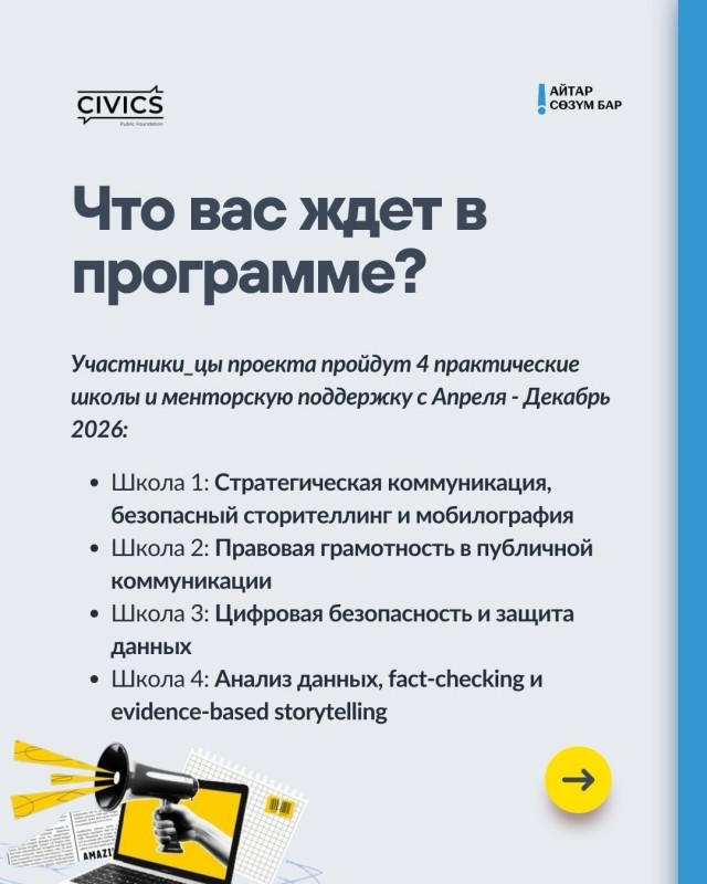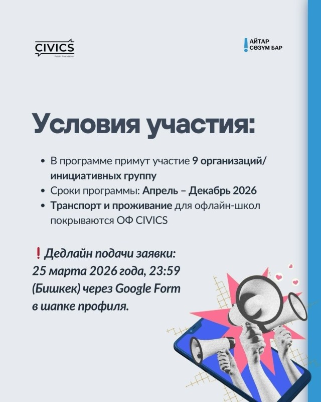 🔥ОФ СИВИКС объявляет набор организаций гражданского общества и инициативных групп для участия в программе поддержки безопасной и сильной коммуникации для организаций гражданского общества «Айтар сөзүм бар! I have a message! Мне есть что сказать