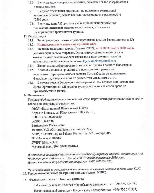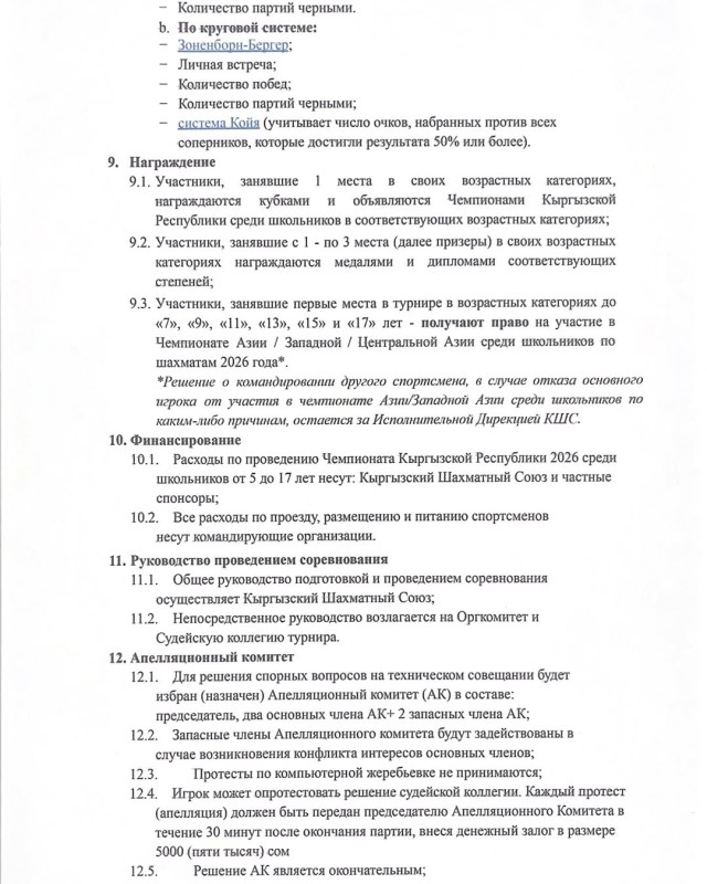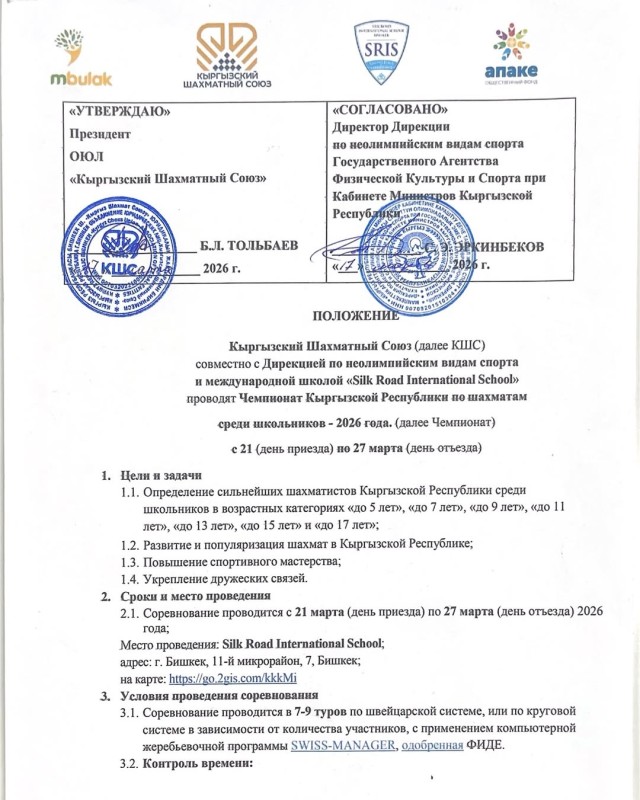 🔹 Чемпионы (-ки) (7–17) получают право представлять Кыргызстан в Чемпионате Азии среди школьников 2026 (в случае финансирования ГАФКиС)