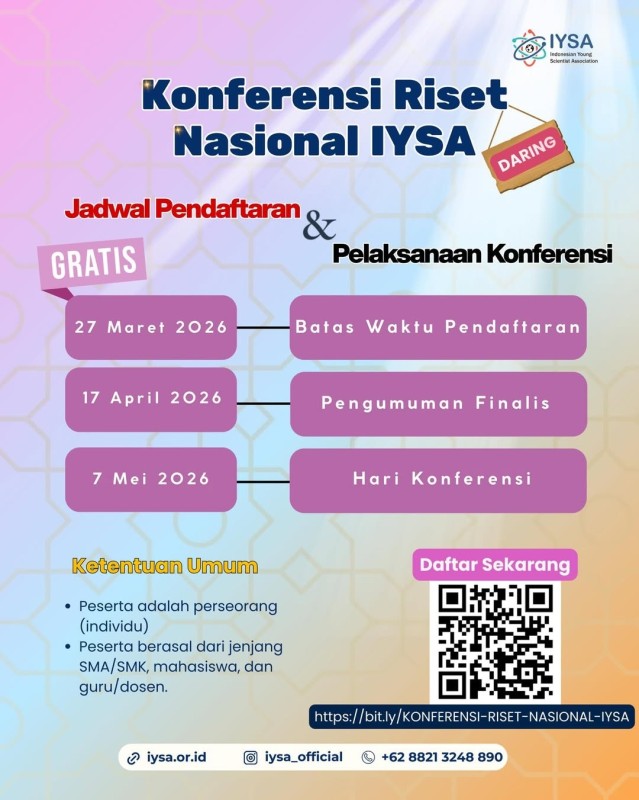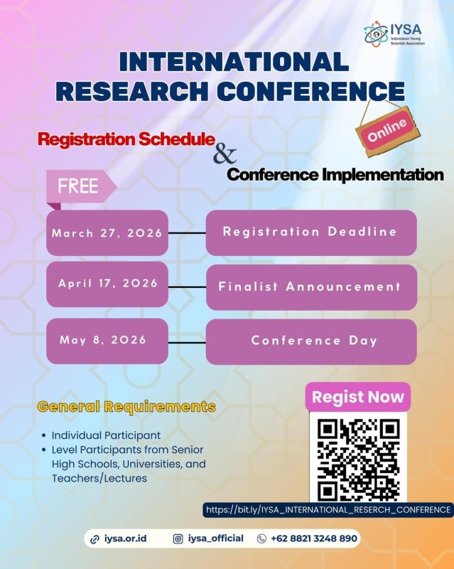 Kesempatan terbuka untuk bergabung dalam IYSA National & International Research Conferences 2026.