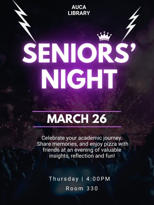 📌The AUCA Library is pleased to invite you to a Seniors’ Night and Pizza Party.🥳🥳🥳