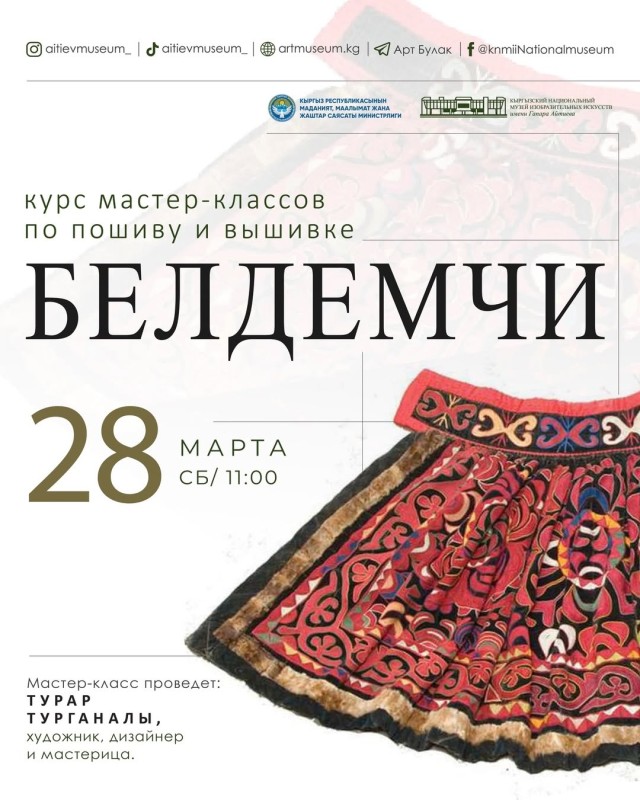 Кыргыз Республикасынын Маданият министрлигинин колдоосу менен Г.Айтиев атындагы Кыргыз улуттук көркөм сүрөт искусство музейинде «Белдемчи» (уландысы) курсу өткөрүлөт.
