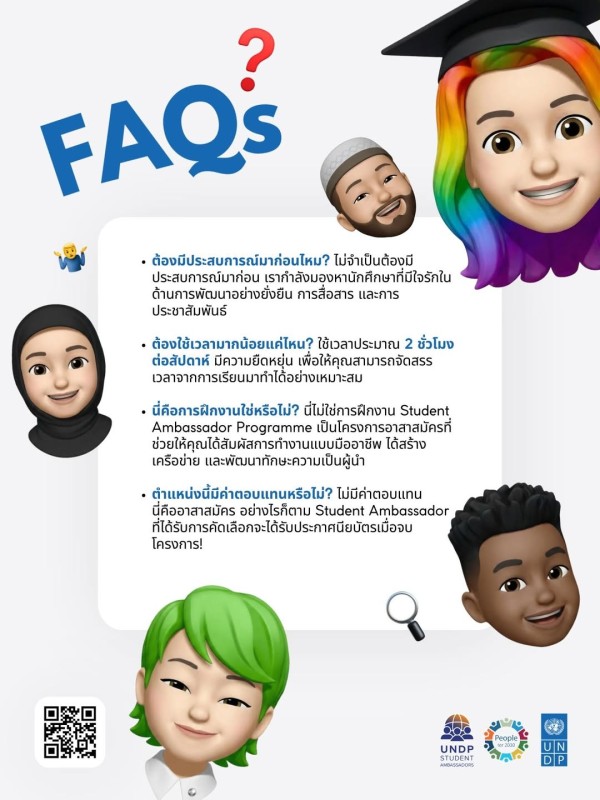 ПРООН принимает заявки от студентов университетов “из каждой провинции Таиланда”! Вам не обязательно жить в Бангкоке, и ваш английский не обязательно должен быть идеальным. Все, что вам нужно, - это страсть к устойчивому развитию (ЦУР) и желание быть голосом своего сообщества