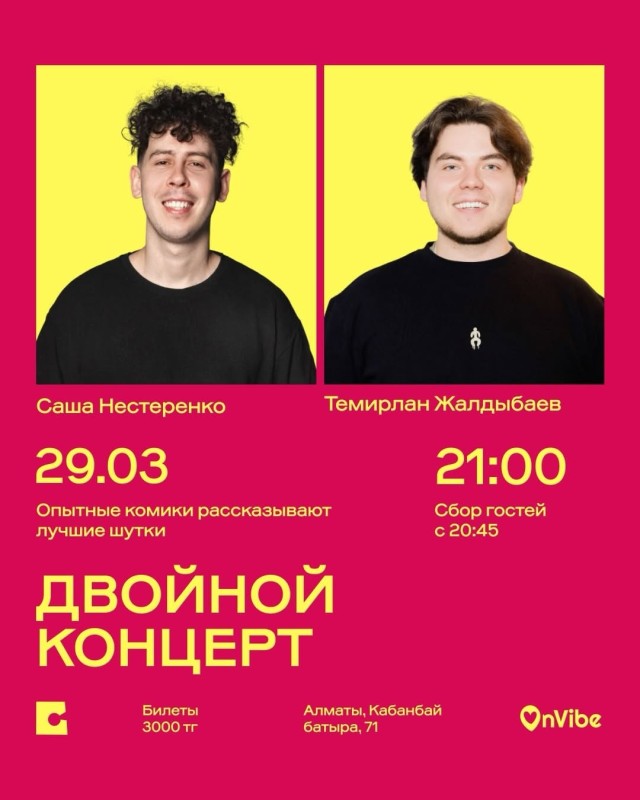 Темирлан Жалдыбаев и Саша Нестеренко: двойной стендап-концерт – 29 марта, в 21:00 ☄️