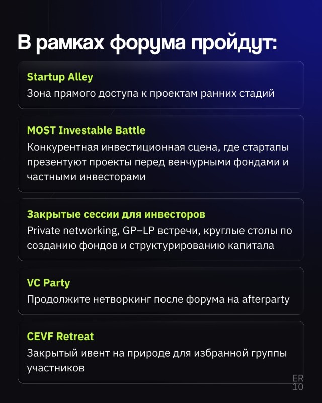 3. Закрытые сессии для инвесторов – Private networking, GP–LP встречи, круглые столы.