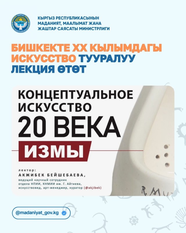 4-апрелде Бишкек шаарындагы Г. Айтиев атындагы Кыргыз улуттук көркөм сүрөт искусство музейинде XX кылымдагы концептуалдык искусство тууралуу лекция өтөт.
