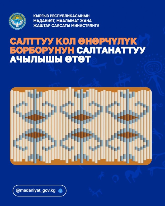 2 апреля в Кыргызском национальном музее изобразительных искусств имени Гапара Айтьева состоится церемония открытия Центра традиционных ремесел. Мероприятие пройдет в рамках проекта содействия развитию между Республикой Корея и Кыргызской Республикой: «Развитие культурного туризма в Кыргызской Республике посредством производства традиционных ремесел и их потенциала в цифровом маркетинге» (2023–2026 гг.).