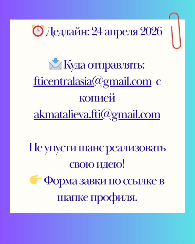 📩 Куда отправлять: fticentralasia@gmail.com с копией akmatalieva.fti@gmail.com