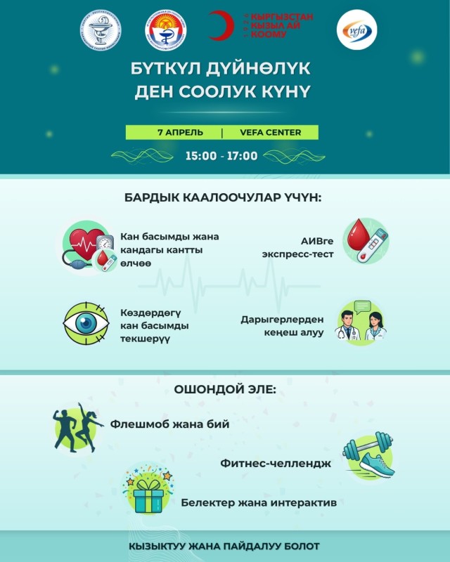 Бүткүл дүйнөлүк ден соолук күнүнө арналган акцияга келиңиздер!
